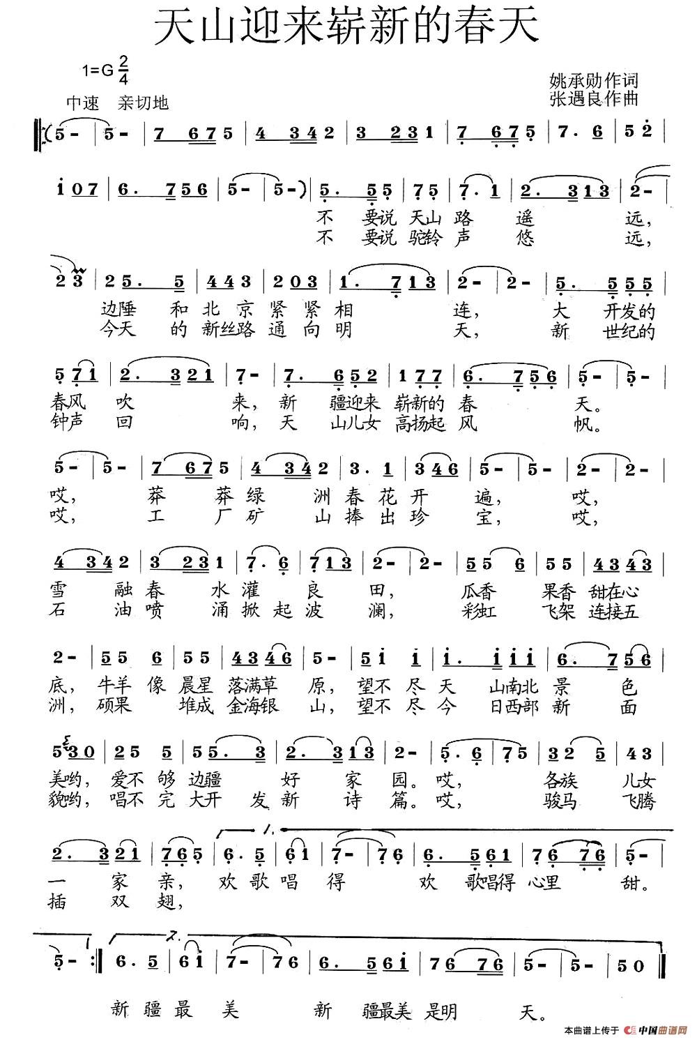 关于《天山迎来崭新的春天》曲谱的评论