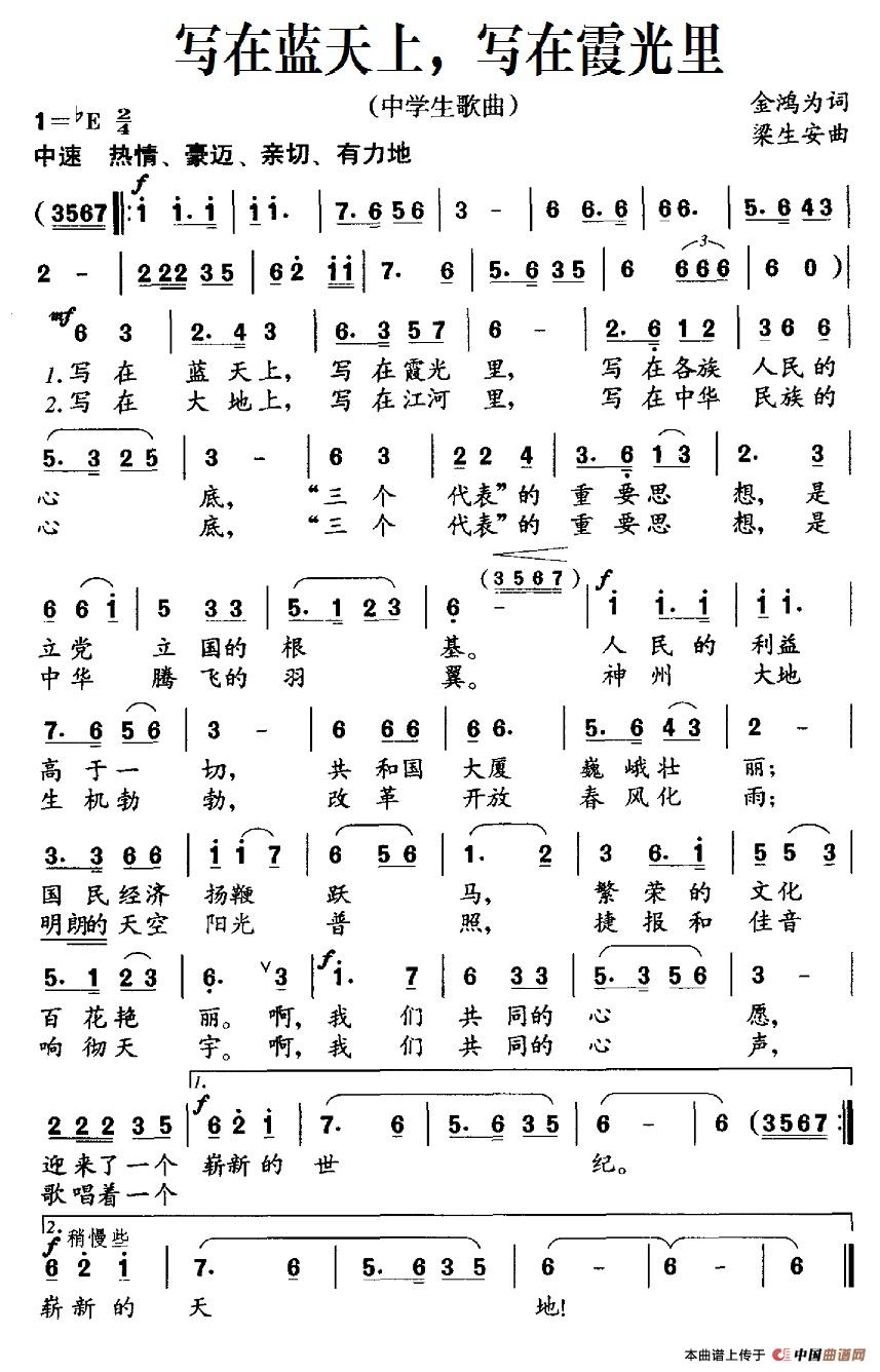 关于《写在蓝天上,写在霞光里》曲谱的评论