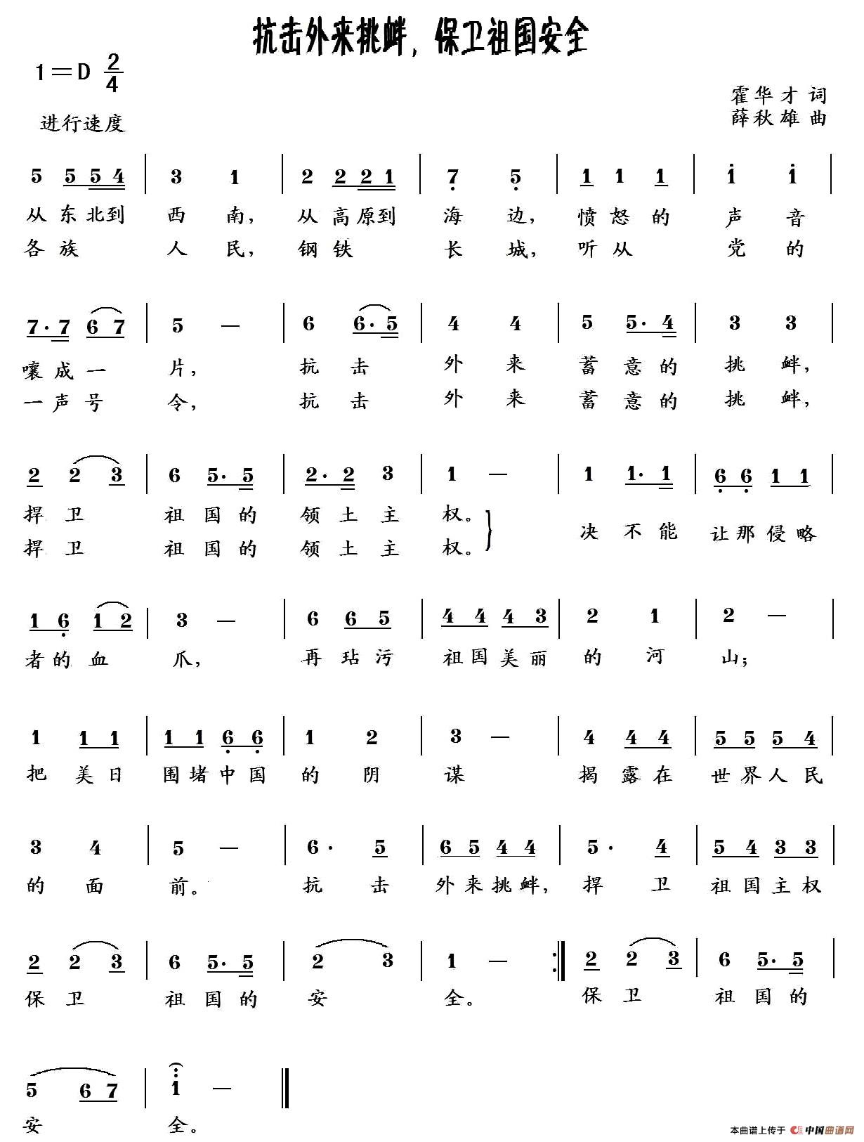关于《抗击外来挑衅,保卫祖国安全》曲谱的评论