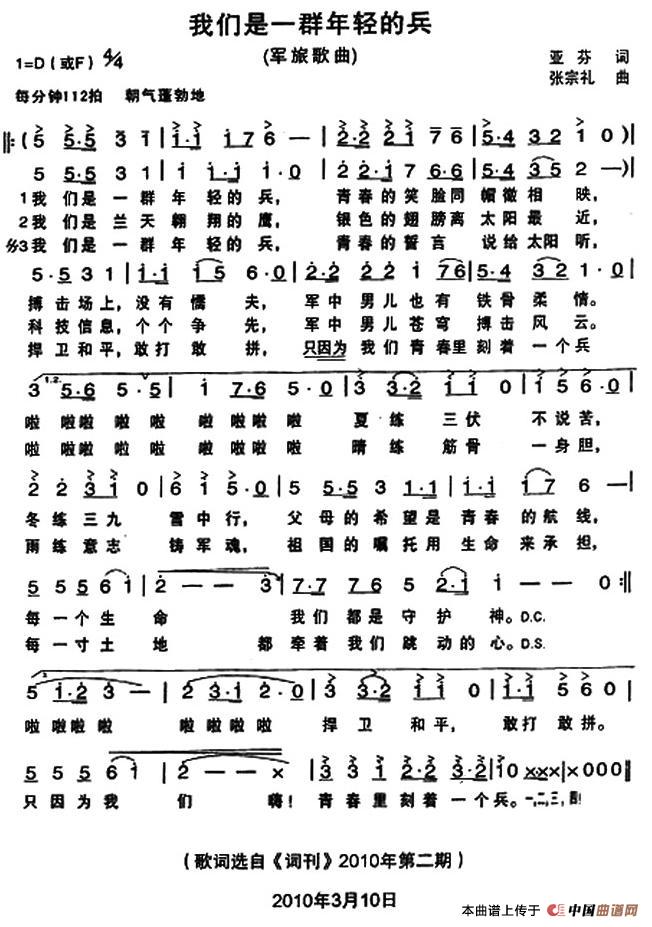 关于《我们是一群年轻的兵》曲谱的评论