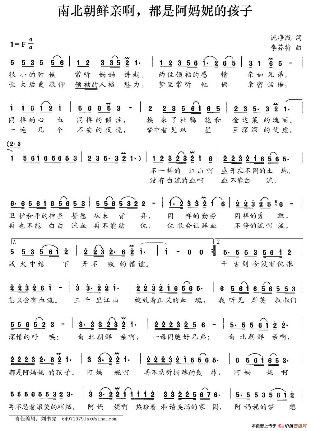 关于《南北朝鲜亲啊,都是阿妈妮的孩子》曲谱的评论
