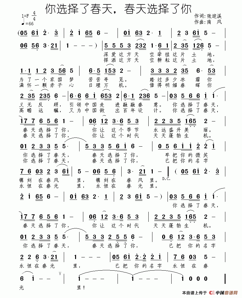 关于《你选择了春天,春天选择了你》曲谱的评论