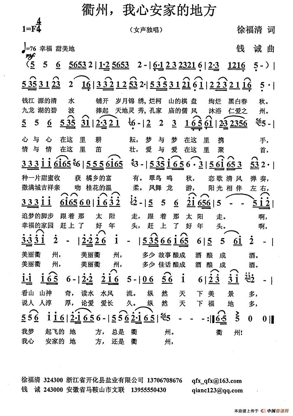 关于《衢州,我心安家的地方》曲谱的评论