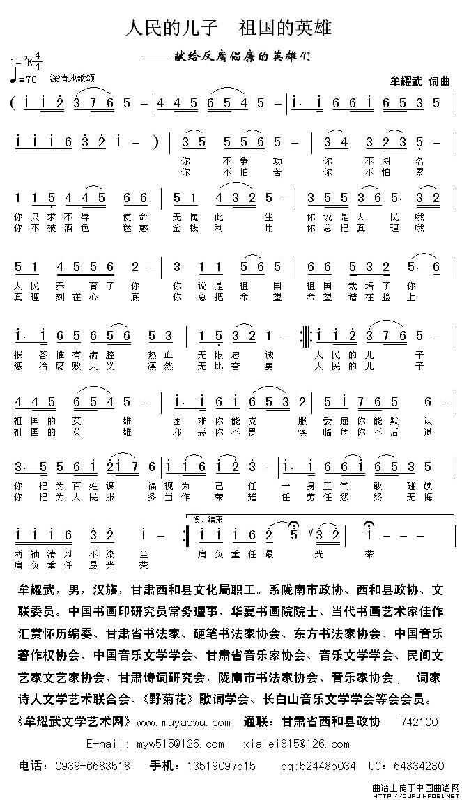 关于《人民的儿子 祖国的英雄》曲谱的评论