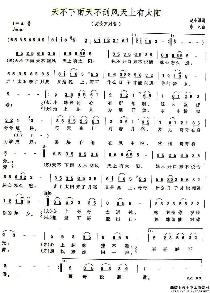 关于《天不下雨天不刮风天上有太阳》曲谱的评论