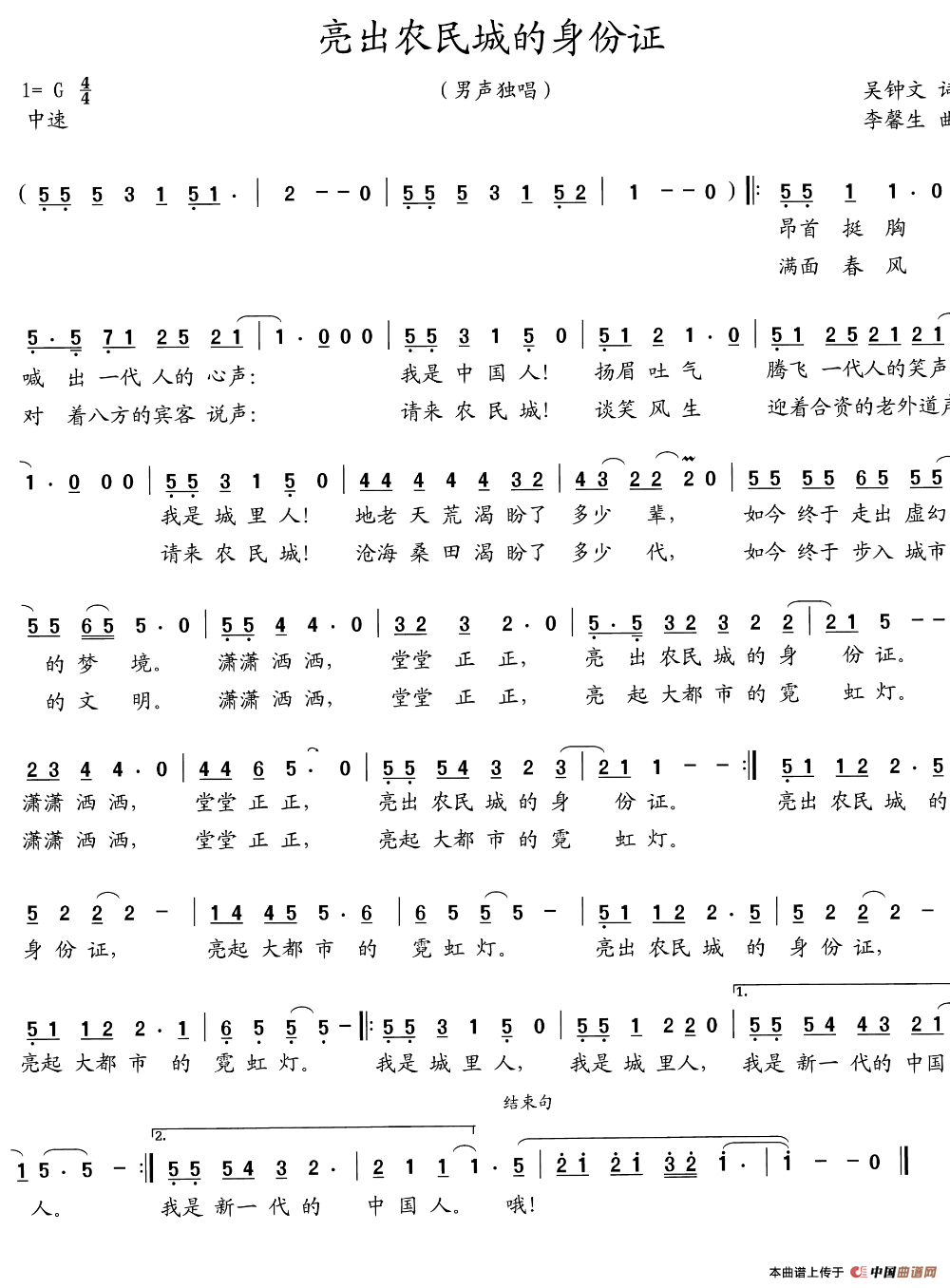 关于《亮出农民城的身份证》曲谱的评论