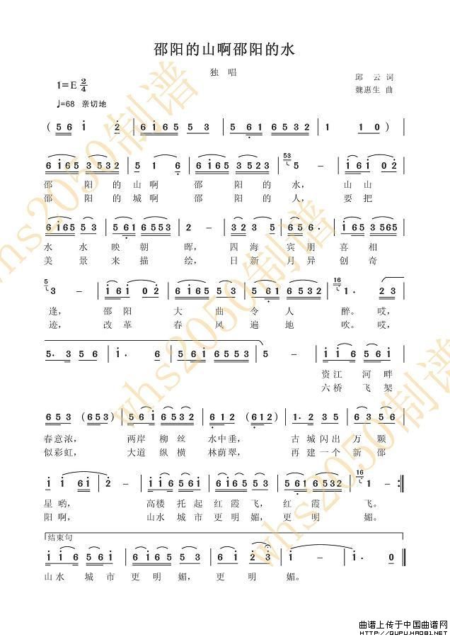 关于《邵阳的山啊邵阳的水》曲谱的评论