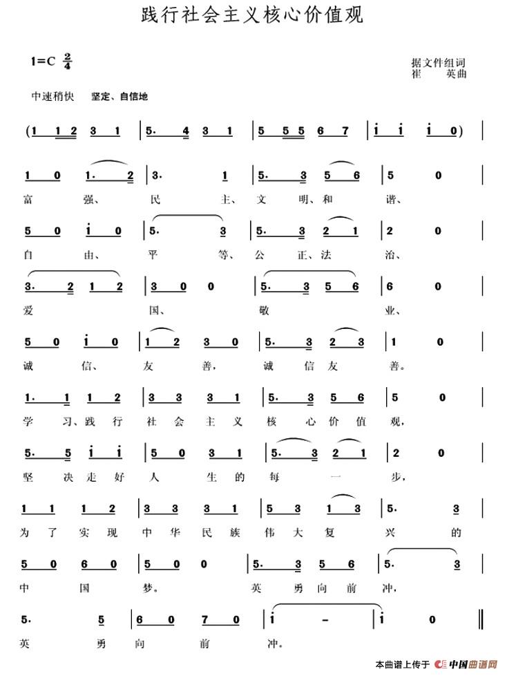 关于《践行社会主义核心价值观》曲谱的评论