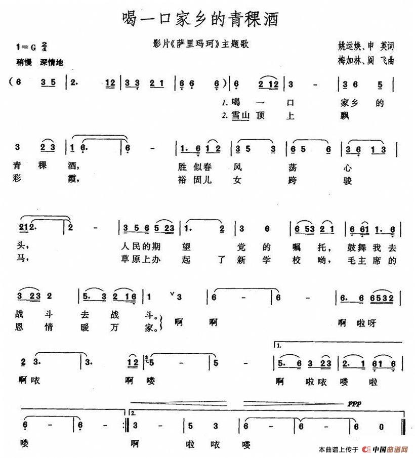喝一口家乡的青稞酒(电影《萨里玛珂》主题歌)