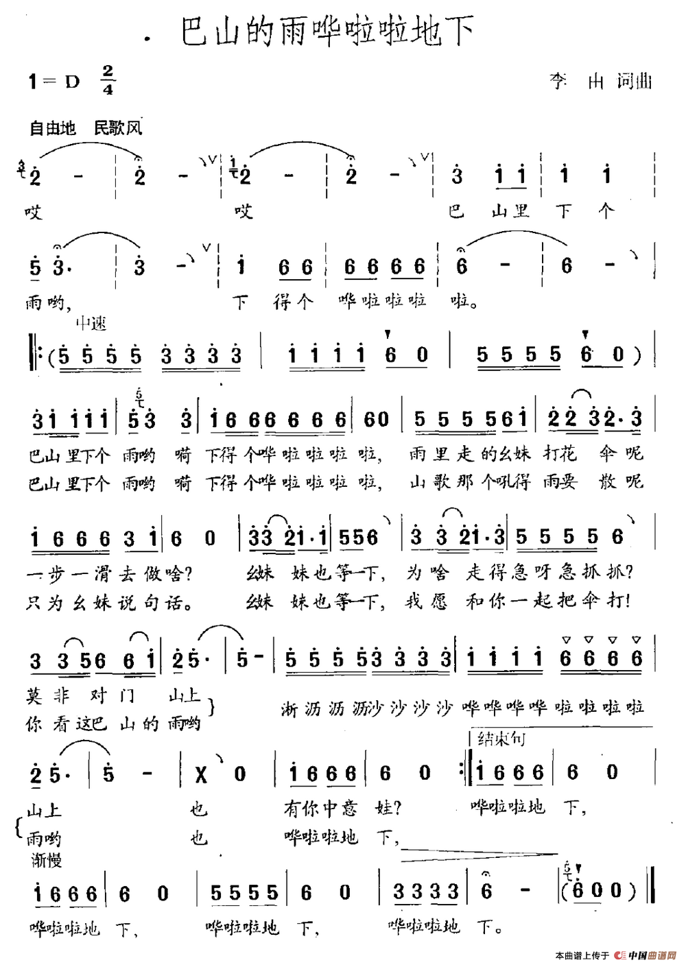 关于《巴山的雨哗啦啦地下》曲谱的评论