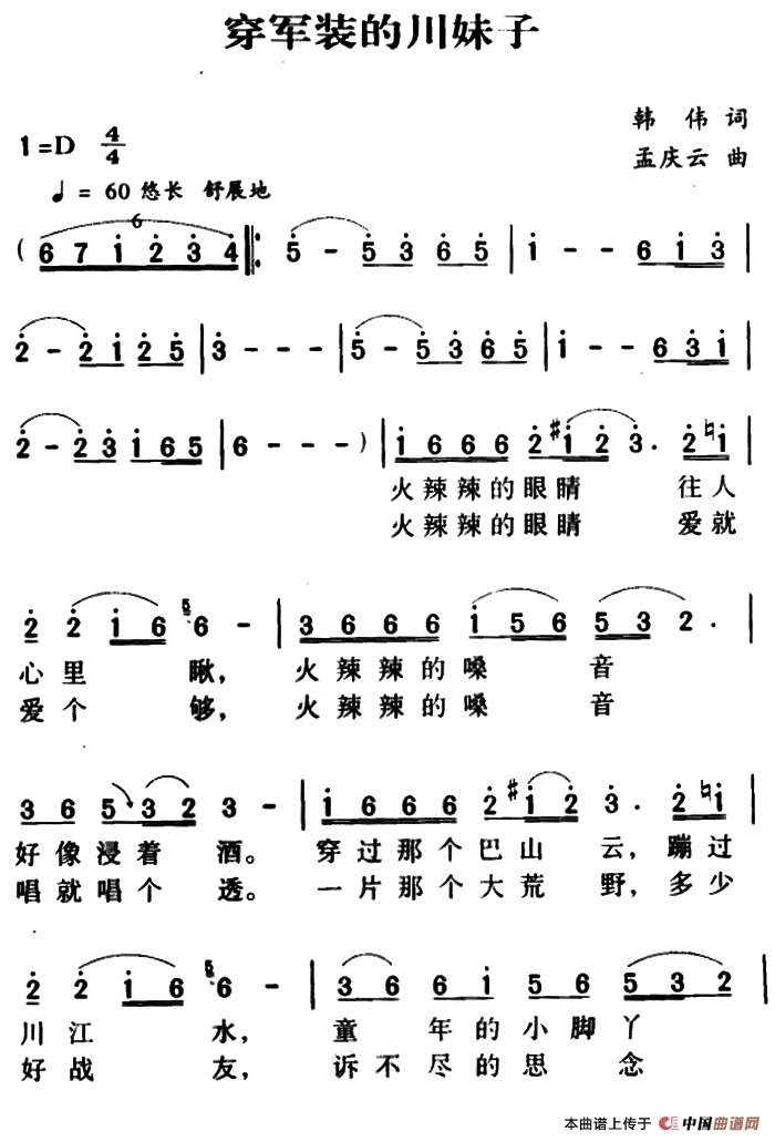 关于《军歌金曲:穿军装的川妹子》曲谱的评论