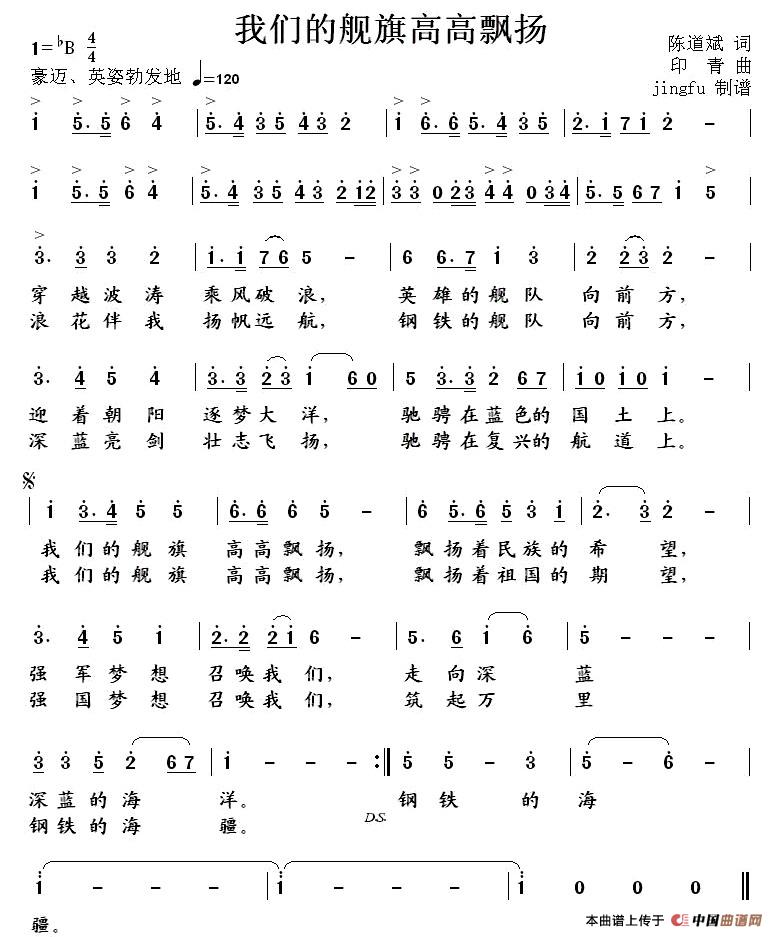 关于《我们的舰旗高高飘扬》曲谱的评论