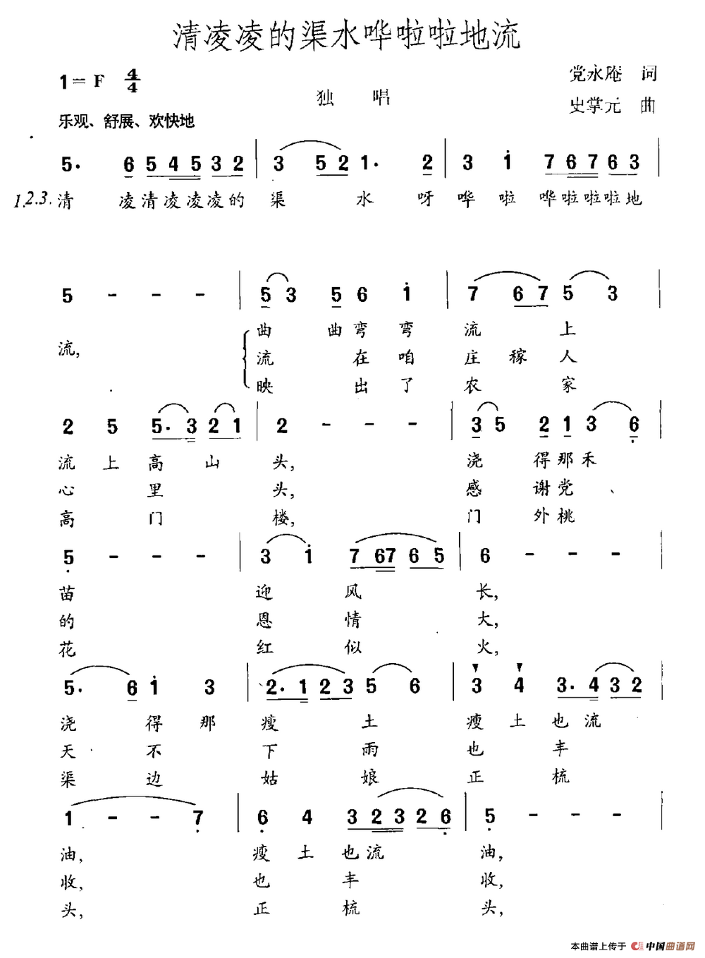 关于《清凌凌的渠水哗啦啦地流》曲谱的评论