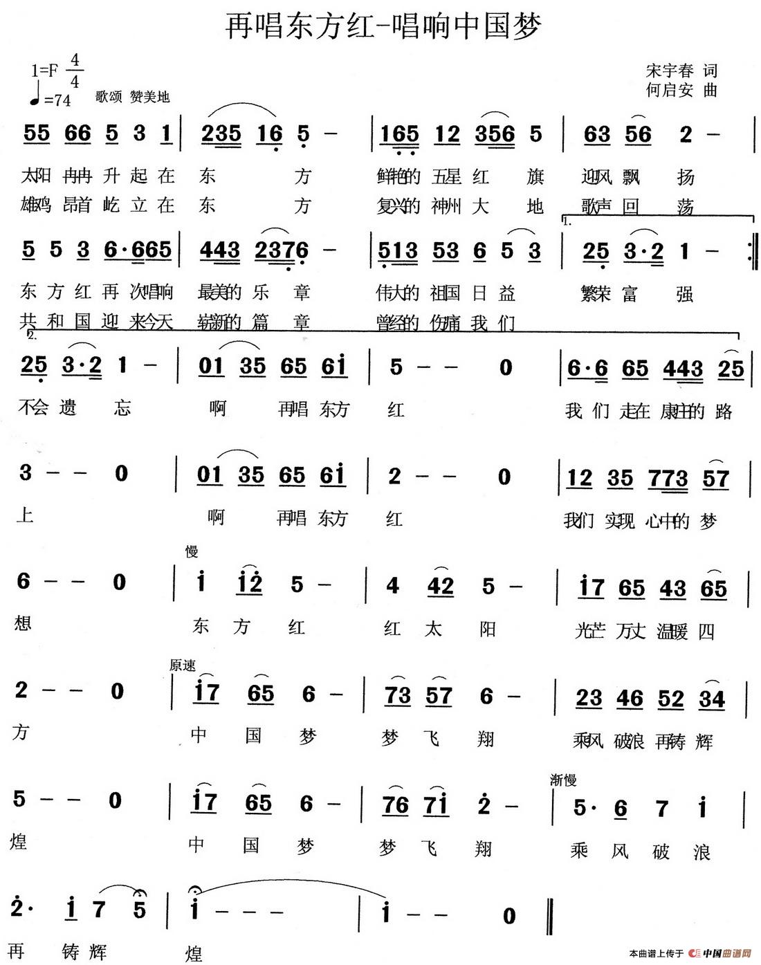 关于《再唱东方红—迎接中国梦》曲谱的评论
