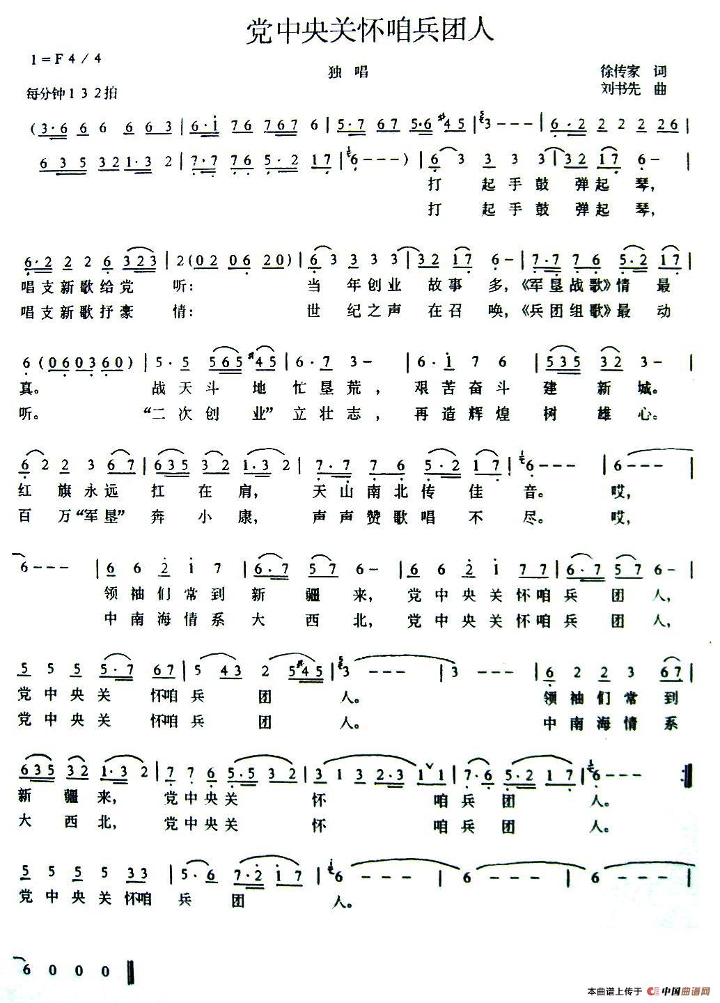 关于《党中央关怀咱兵团人》曲谱的评论