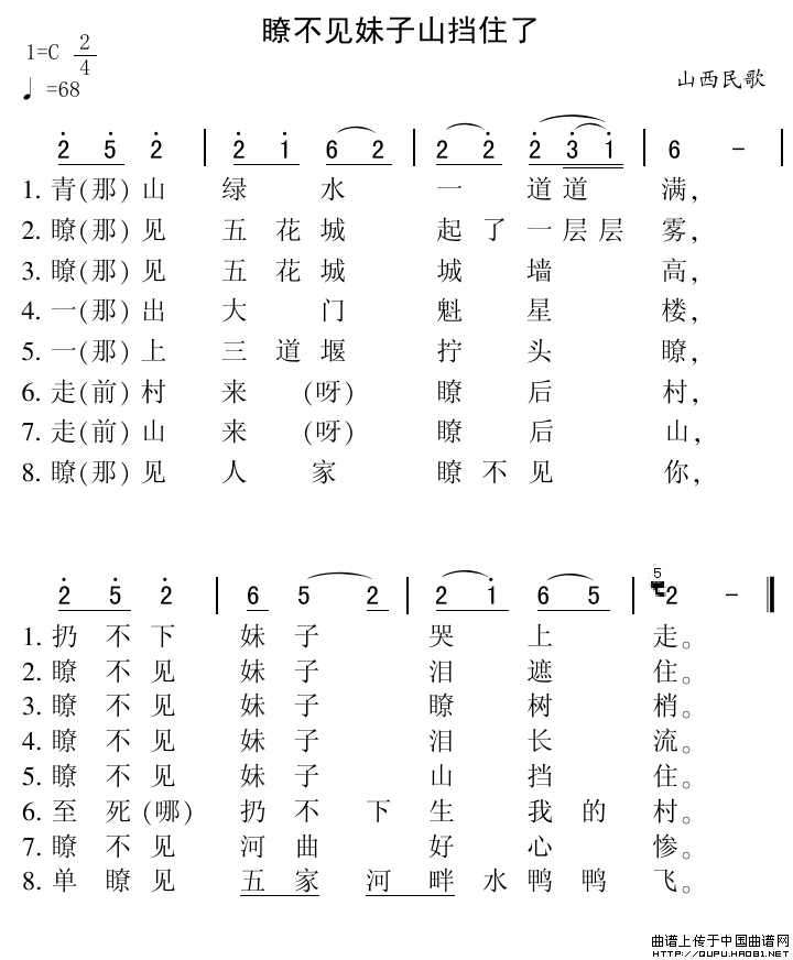 关于《瞭不见妹子山挡住了》曲谱的评论