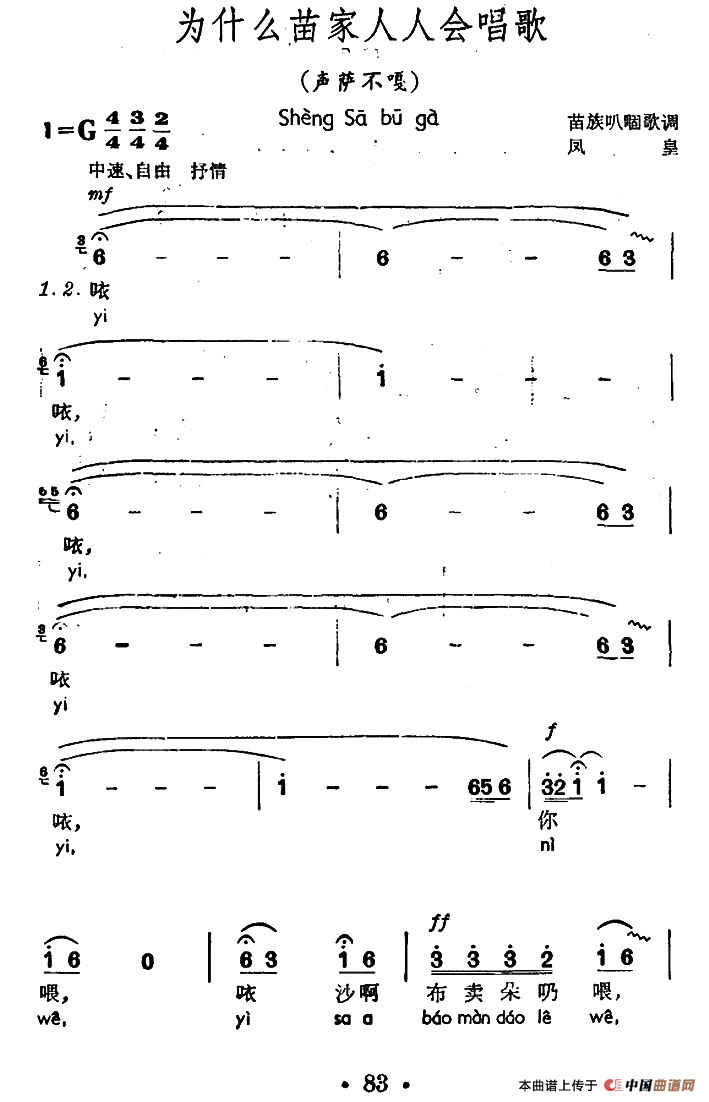 关于《为什么苗家人人会唱歌》曲谱的评论