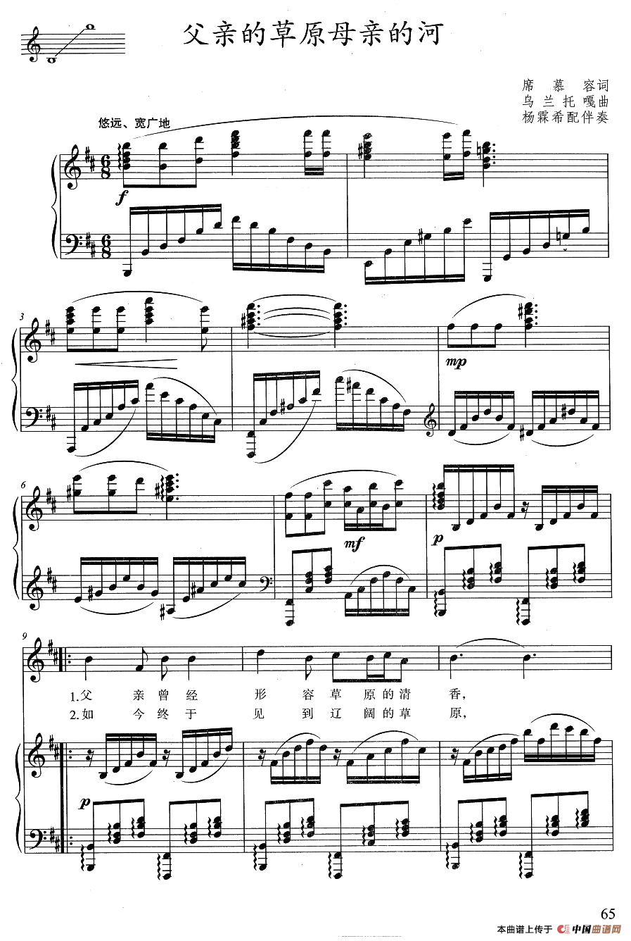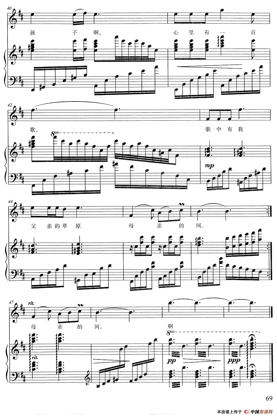 关于《父亲的草原母亲的河》曲谱的评论