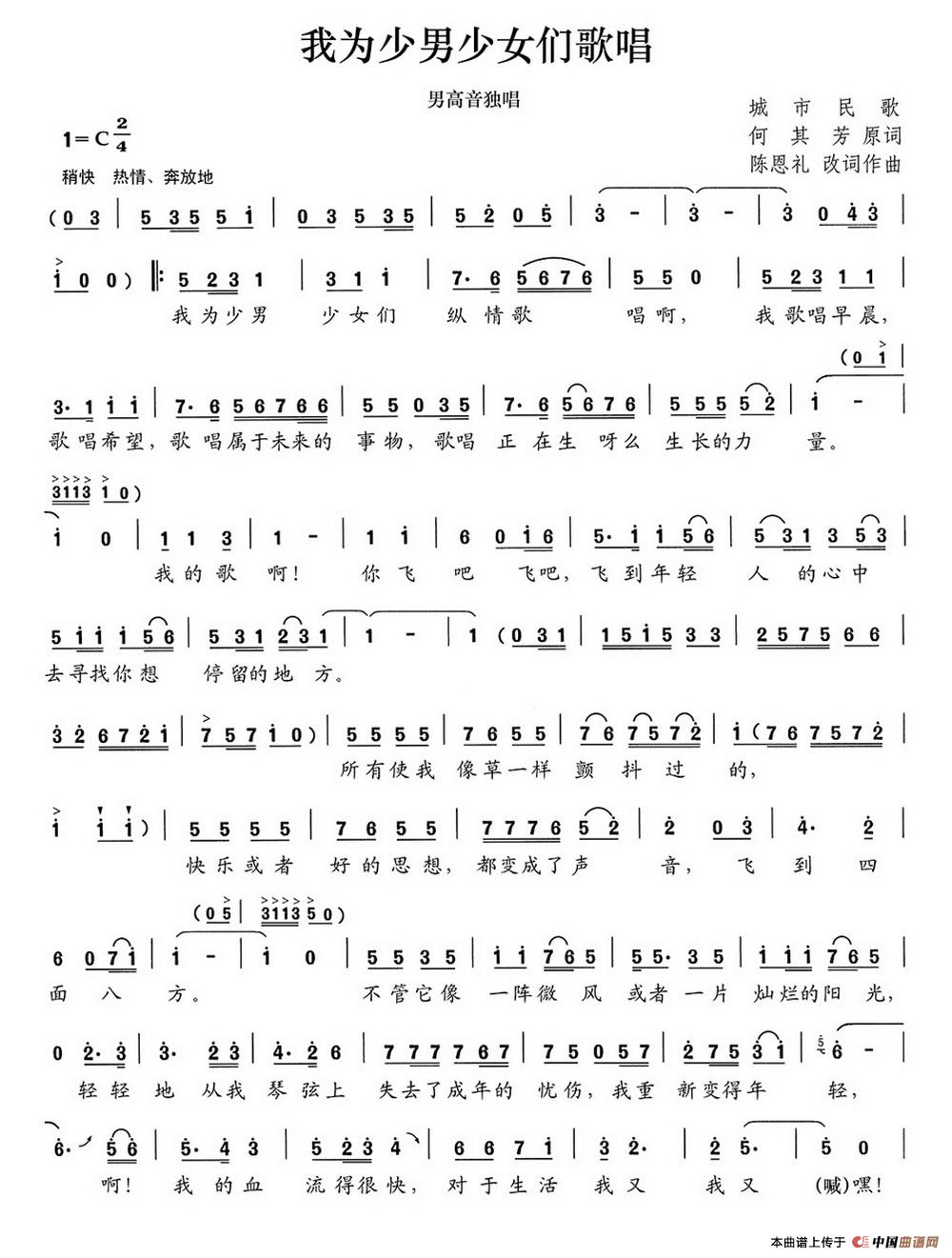 作词:何其芳 原词 作曲:陈恩礼 改词作曲 来源:选自《江山之春》 上传:沉舟侧畔过