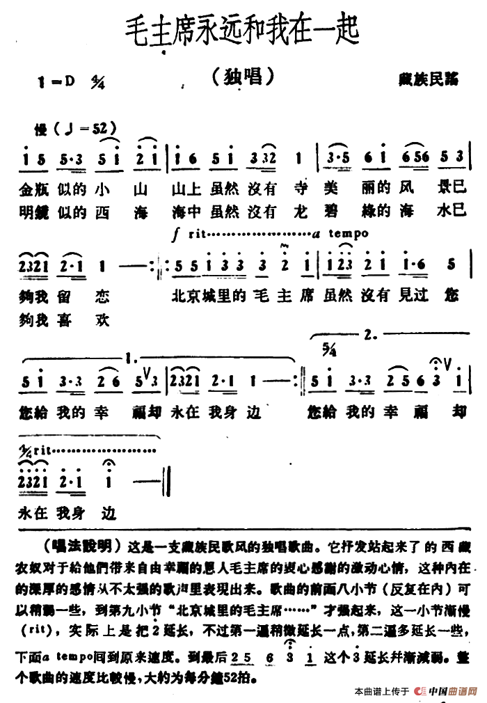 毛主席永远和我在一起(藏族民歌、冰河作曲)