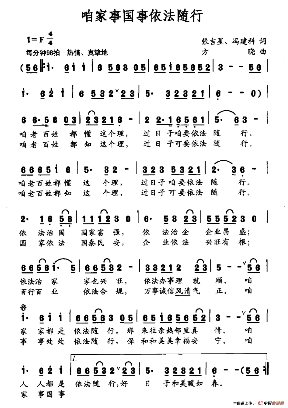 关于《咱家事国事依法随行》曲谱的评论