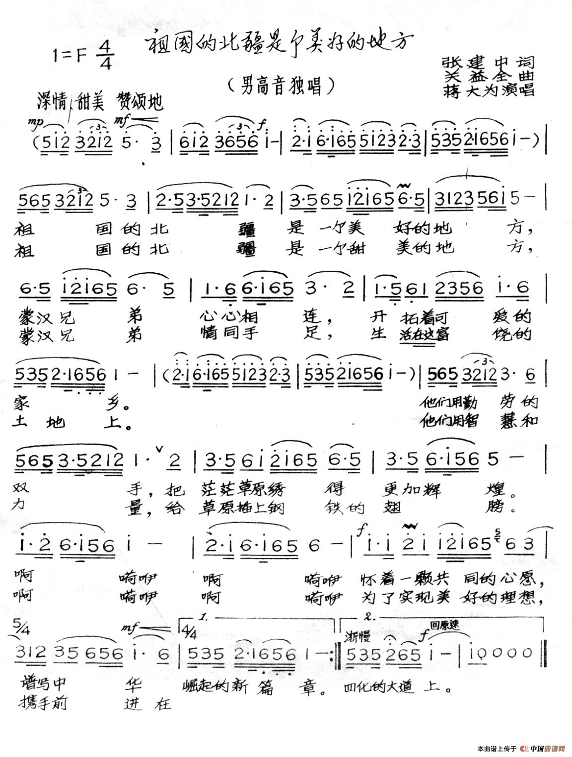 关于《祖国北疆是个美好的地方》曲谱的评论