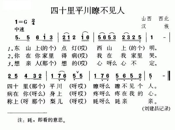关于《四十里平川瞭不见人》曲谱的评论