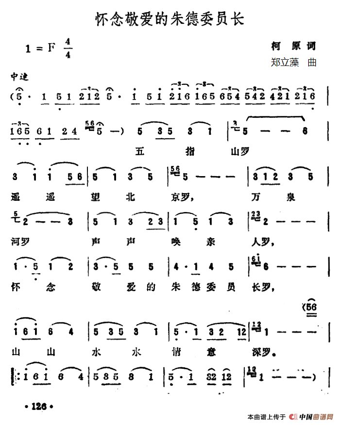 关于《怀念敬爱的朱德委员长》曲谱的评论