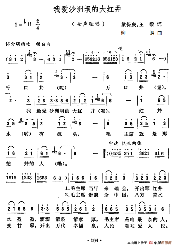 关于《我爱沙洲坝的大红井》曲谱的评论