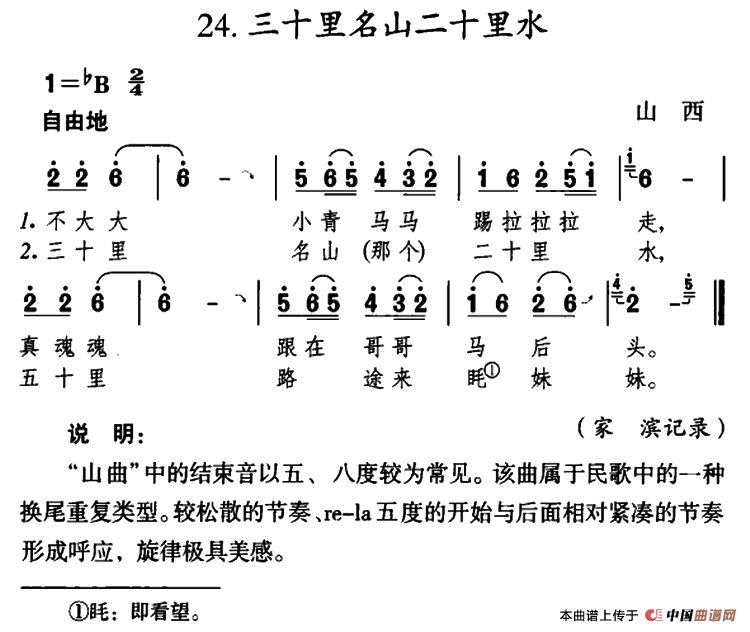 关于《三十里名山二十里水(陕西民歌)》曲谱的评论