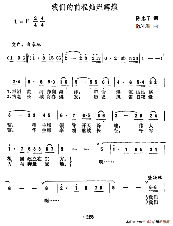 关于《我们的前程灿烂辉煌》曲谱的评论