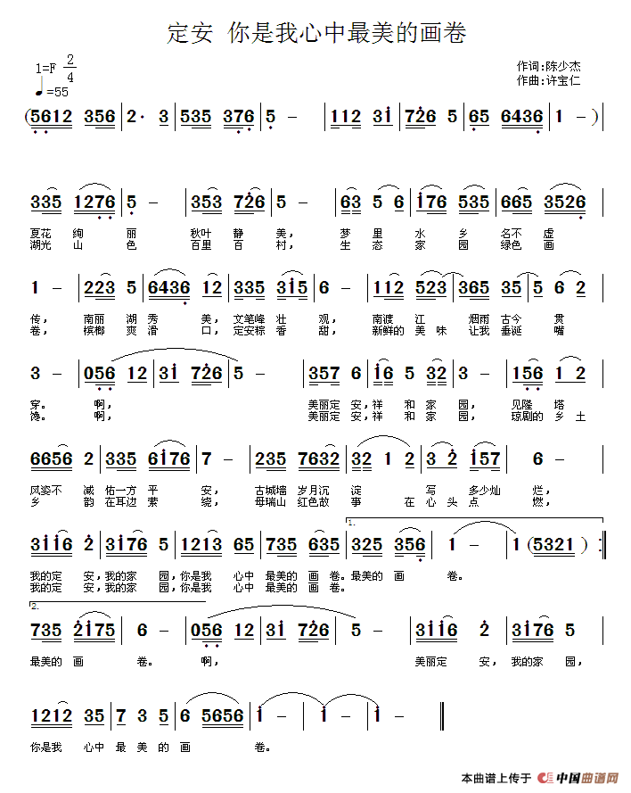 关于《定安 你是我心中最美的画卷》曲谱的评论