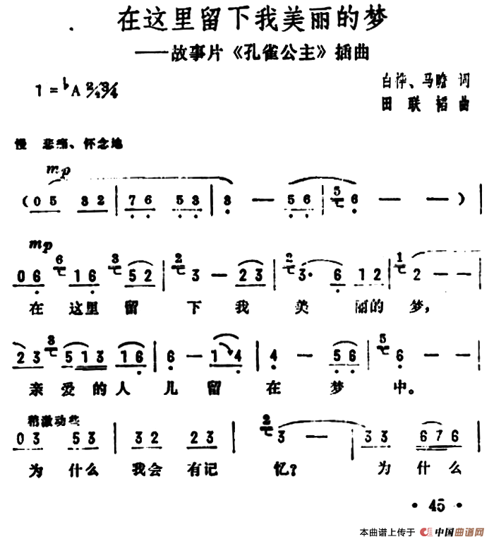 在这里留下我美丽的梦(电影《孔雀公主》插曲)
