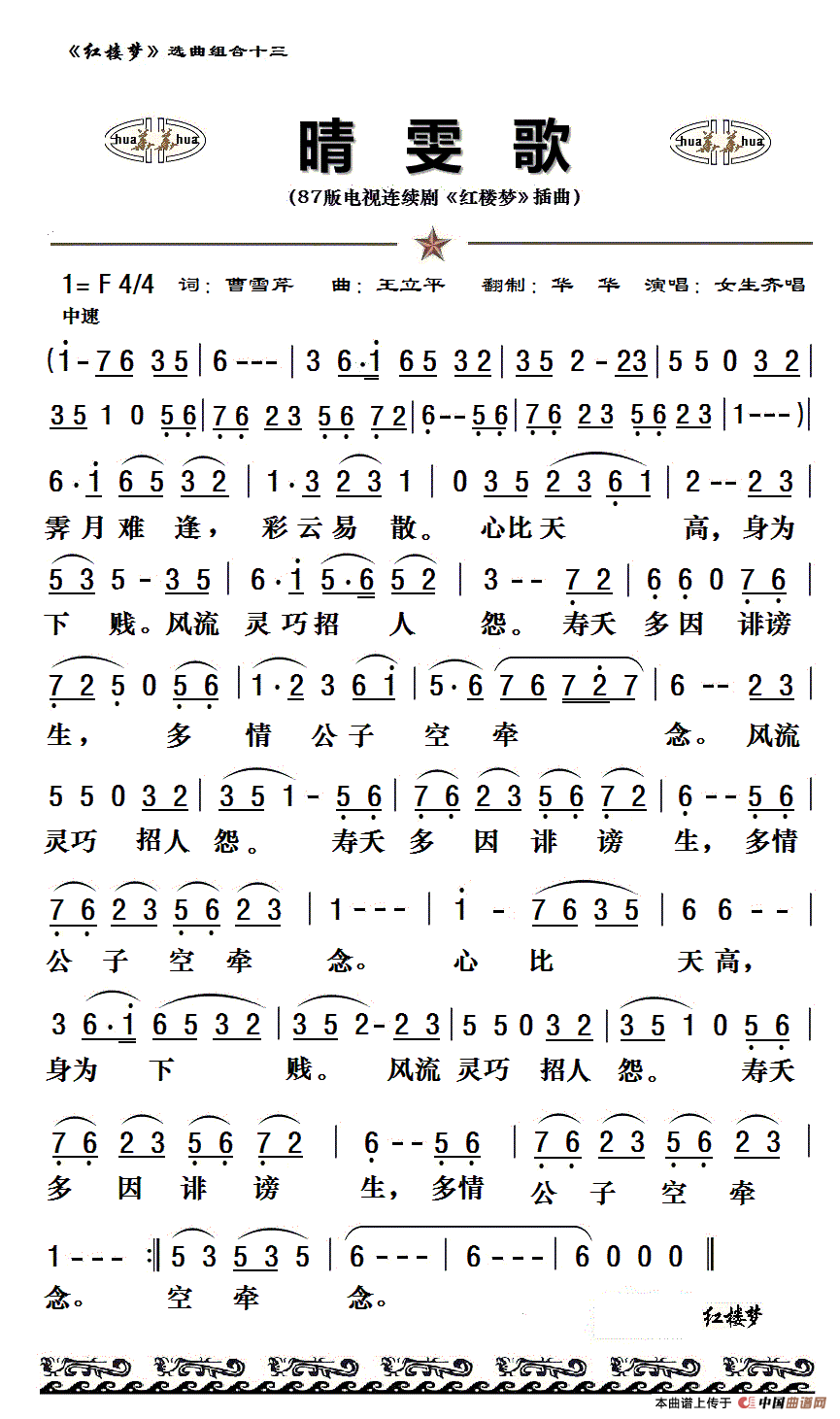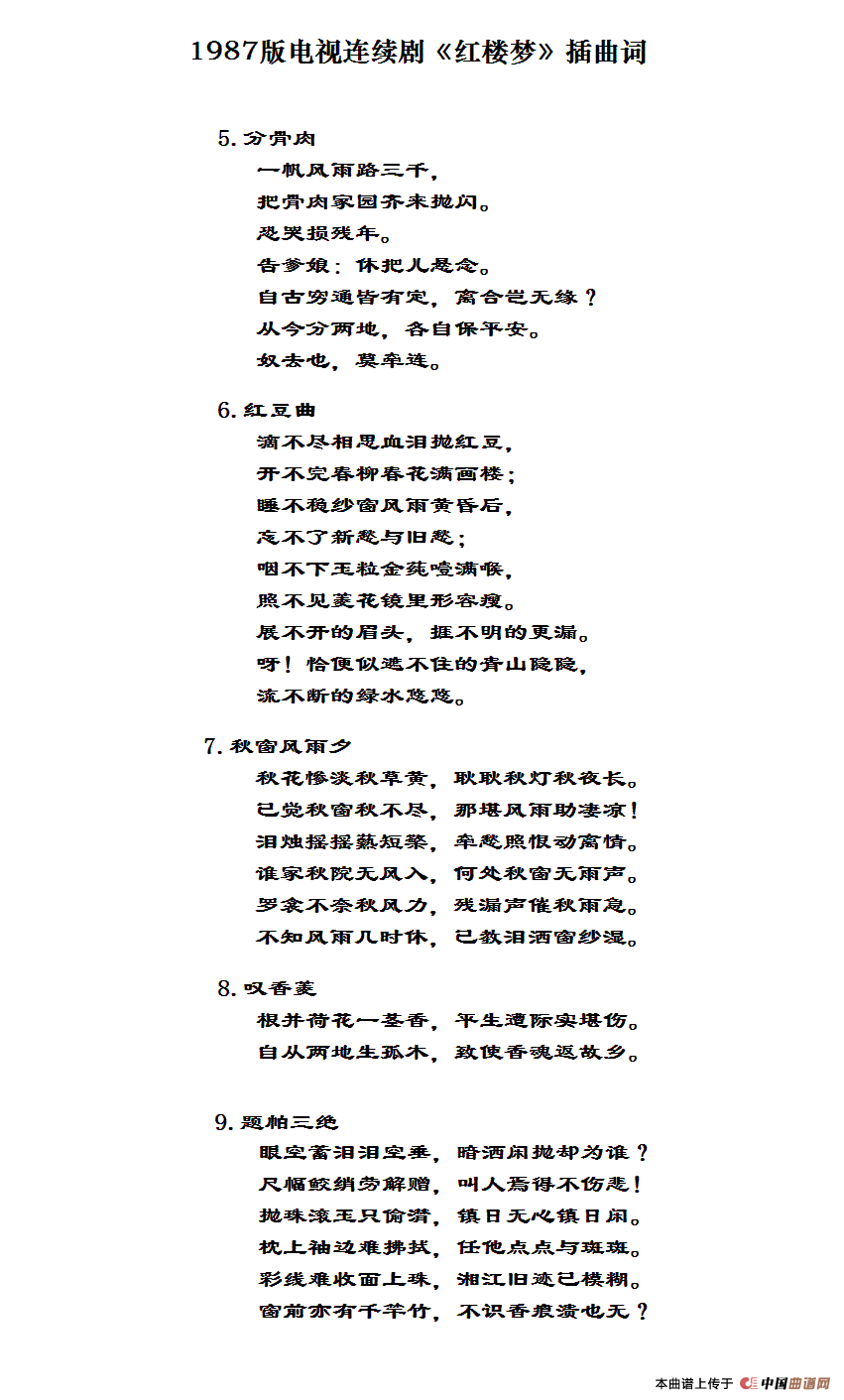 关于《八七版电视连续剧《红楼梦》插曲13首》曲谱的评论