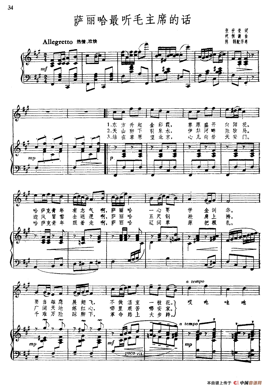 关于《萨丽哈最听毛主席的话》曲谱的评论