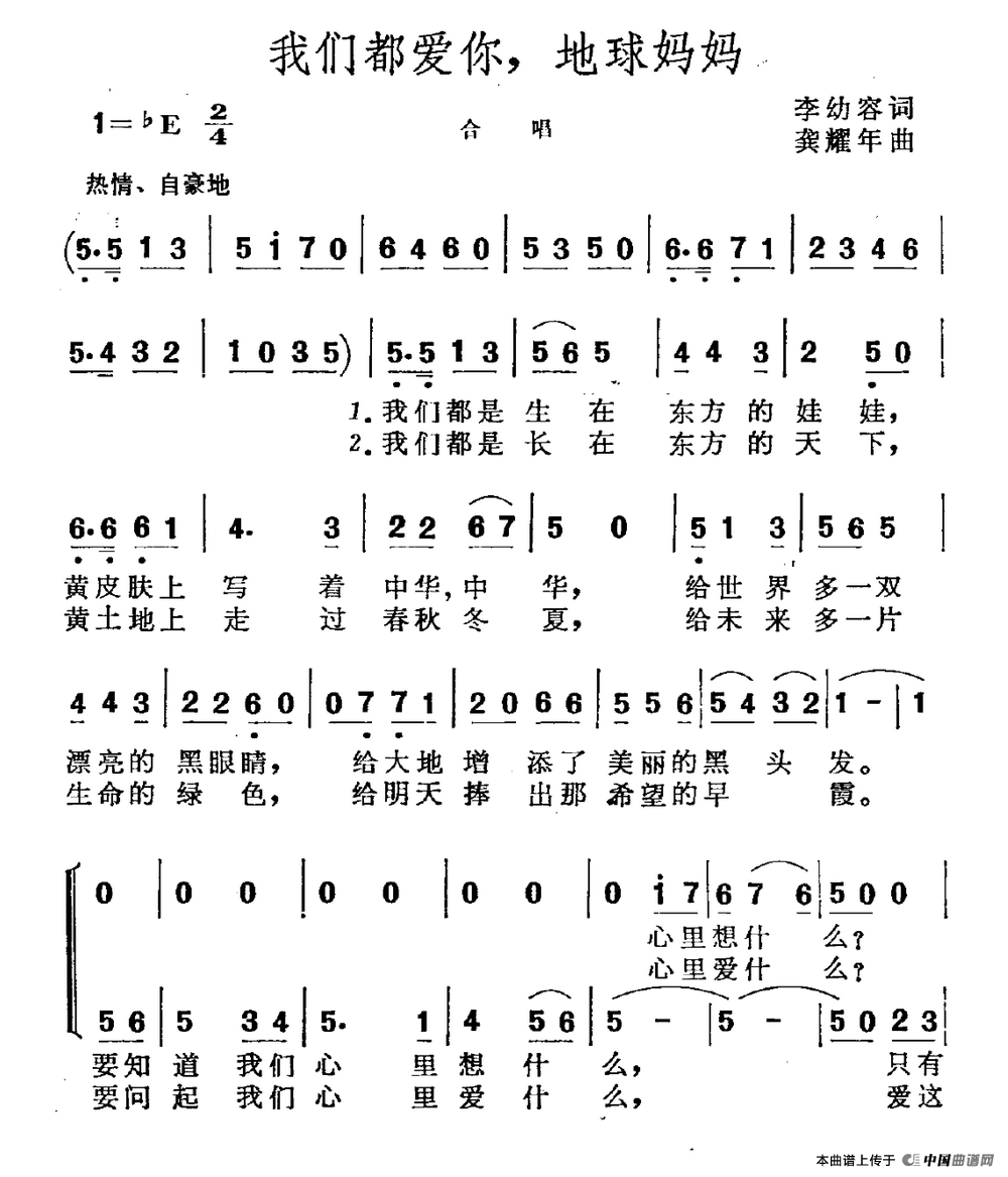 关于《我们都爱你,地球妈妈》曲谱的评论