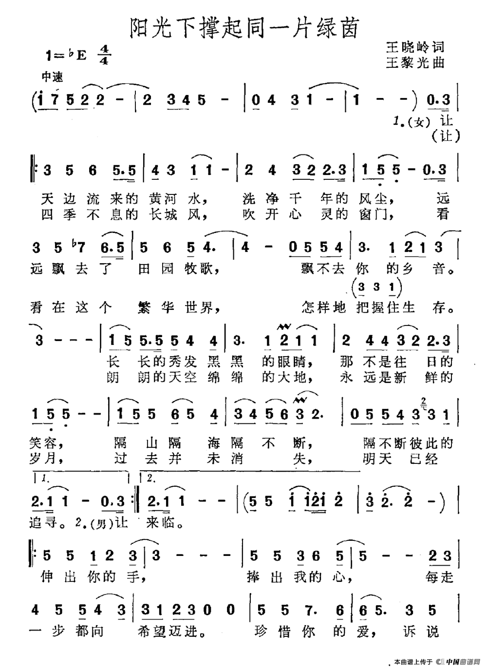 关于《阳光下撑起同一片绿茵》曲谱的评论