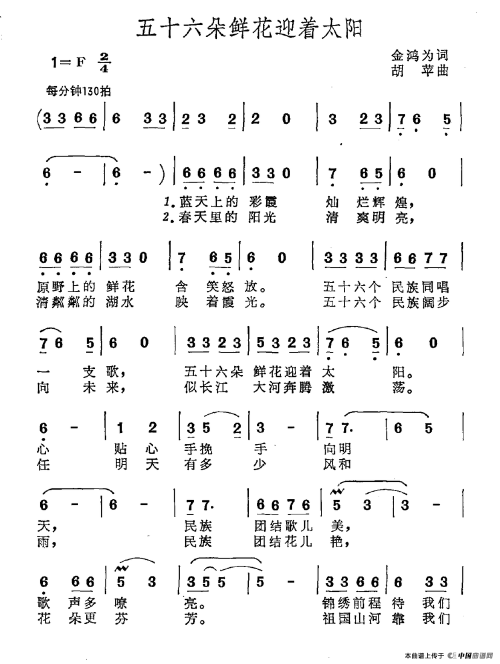 关于《五十六朵鲜花迎着太阳》曲谱的评论