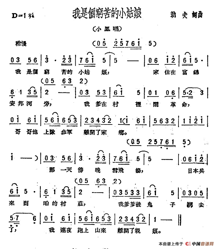 关于《我是个穷苦的小姑娘》曲谱的评论