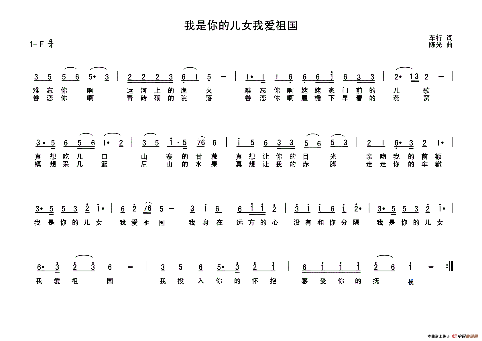 关于《我是你的儿女我爱祖国》曲谱的评论