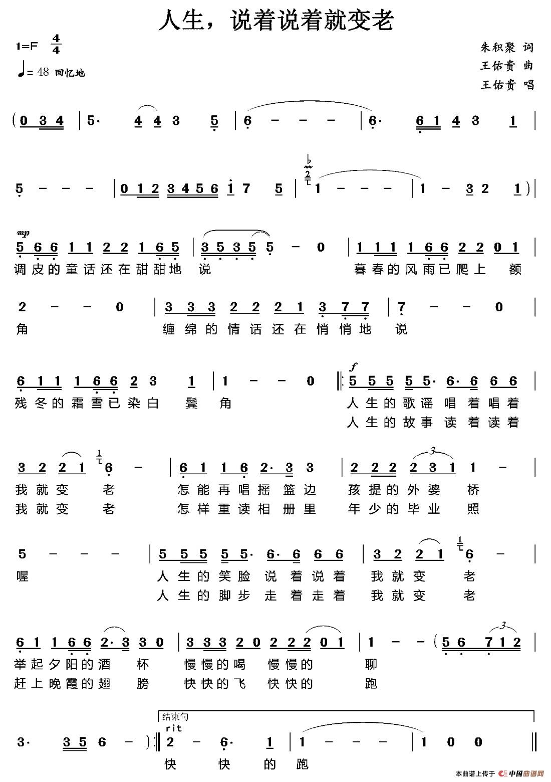 致谢:《中国曲谱网》衷心感谢作者老师馈赠原版歌谱!