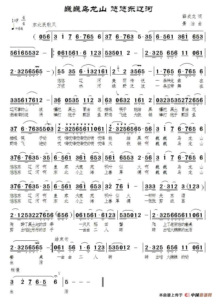 关于《魏巍乌龙山 悠悠东辽河》曲谱的评论