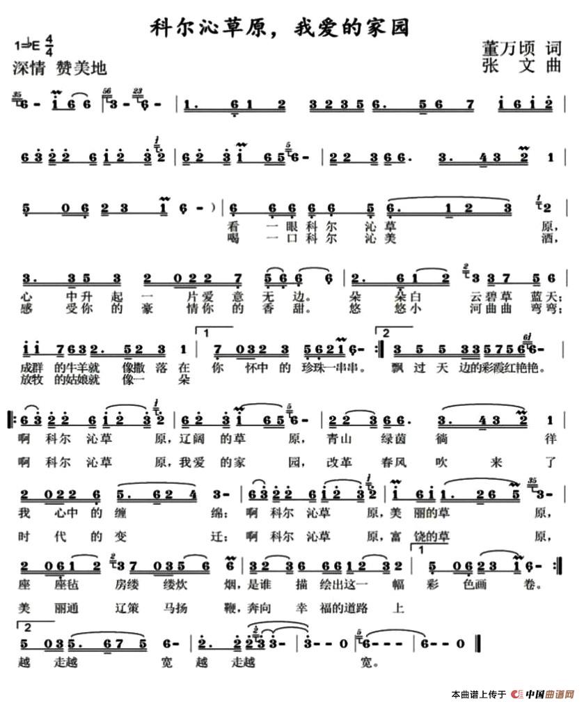 关于《科尔沁草原,我爱的家园》曲谱的评论
