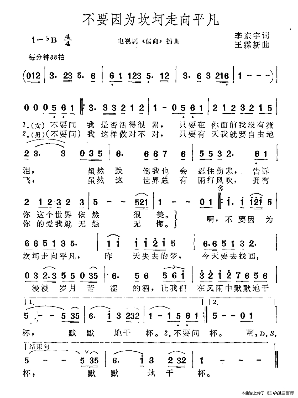 不要因为坎坷走向平凡(电视剧《儒商》插曲)