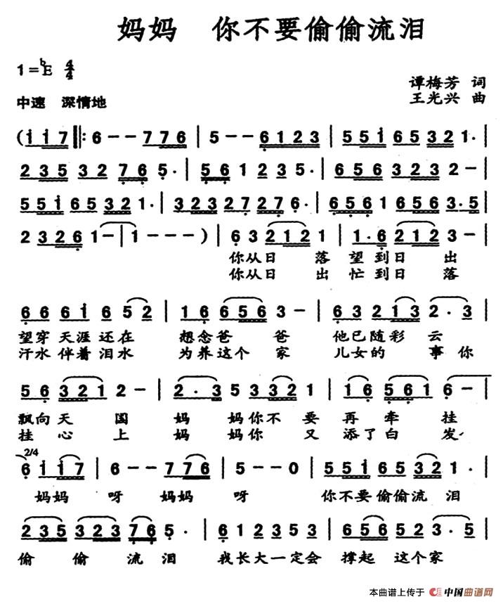 关于《妈妈 你不要偷偷流泪》曲谱的评论