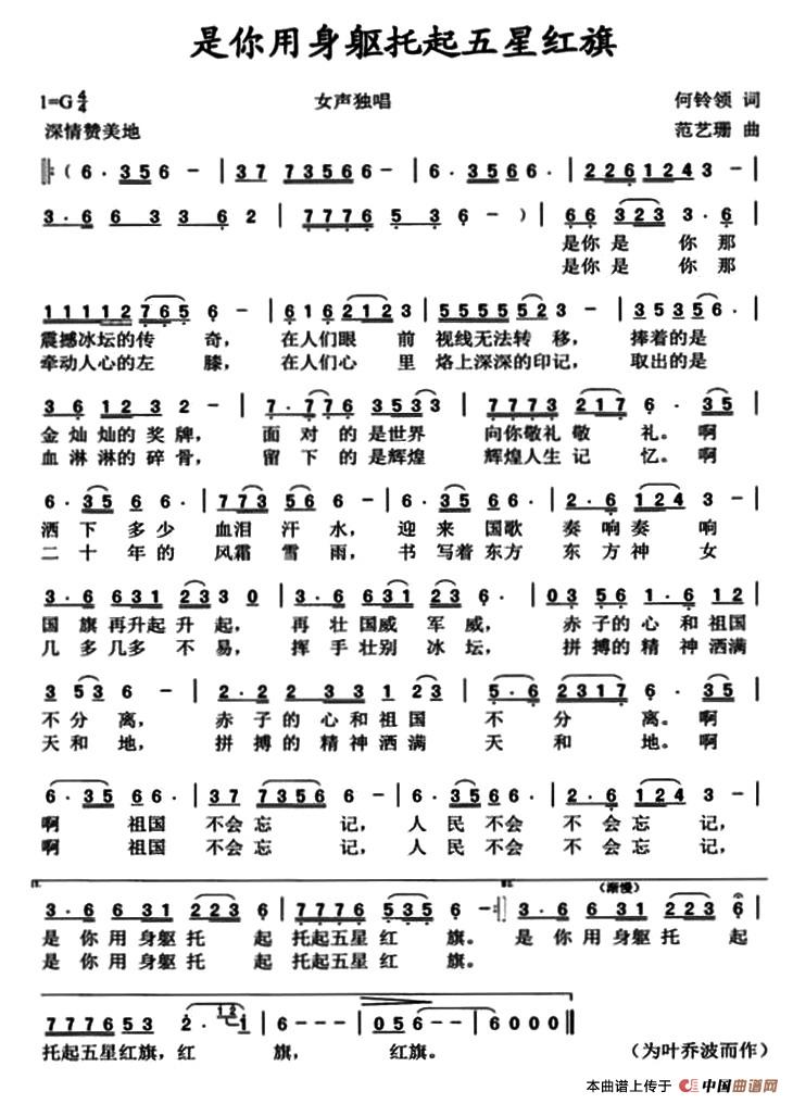 关于《是你用身躯托起五星红旗》曲谱的评论