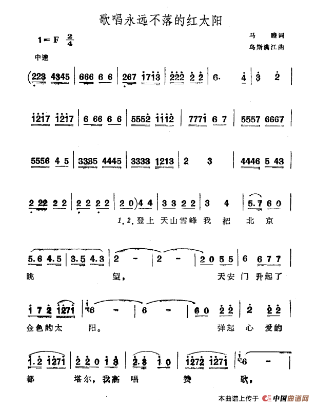 关于《歌唱永远不落的红太阳》曲谱的评论