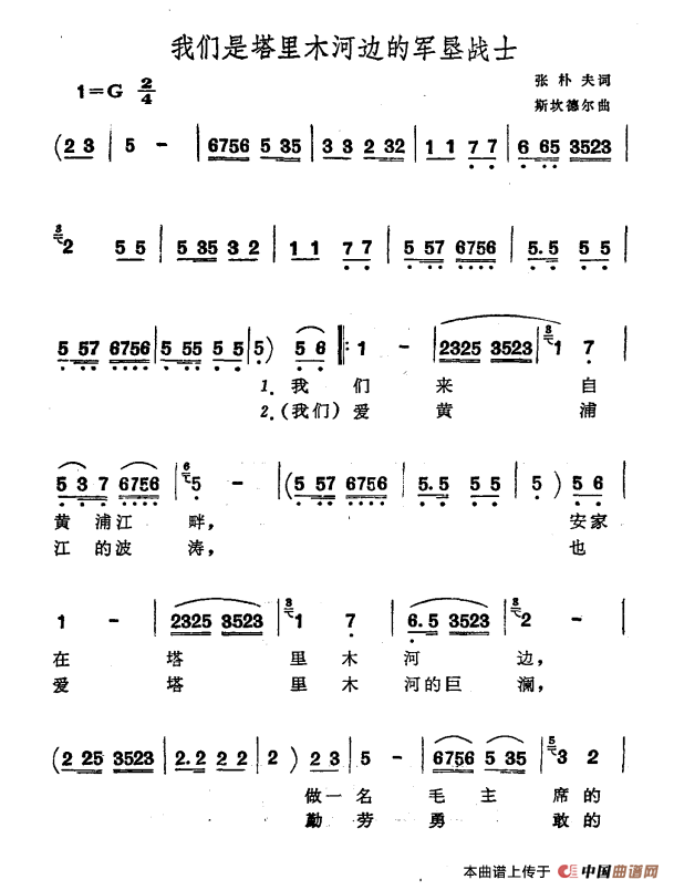关于《我们是塔里木河边的军垦战士》曲谱的评论