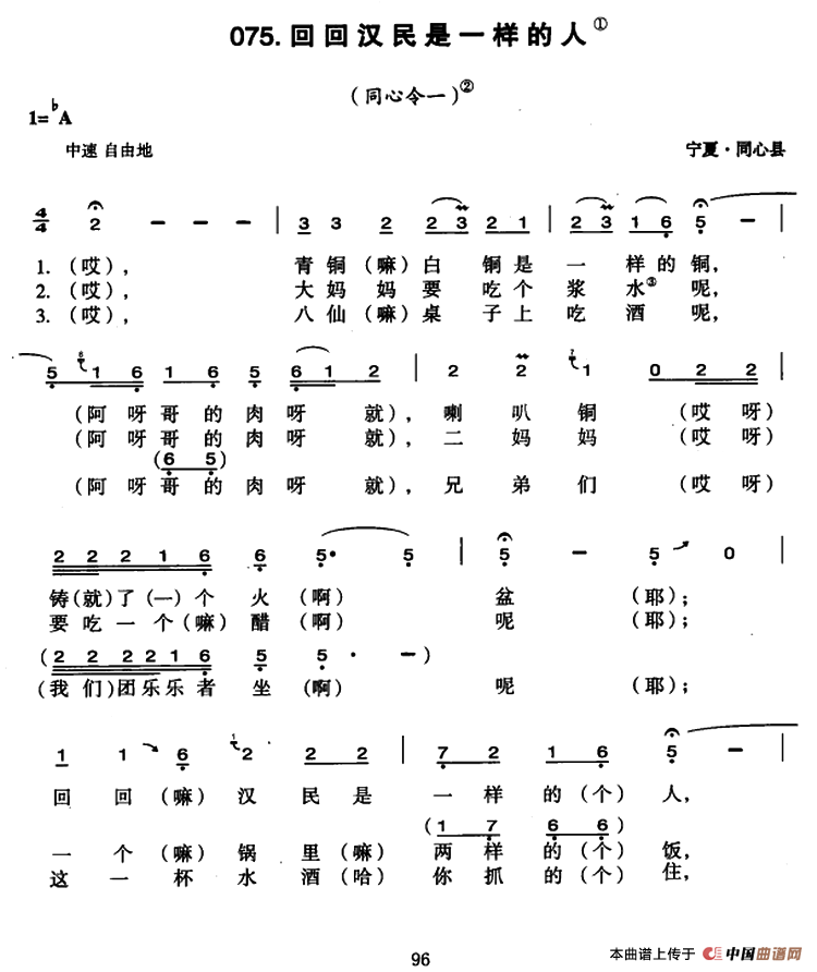 关于《回回汉民是一样的人》曲谱的评论