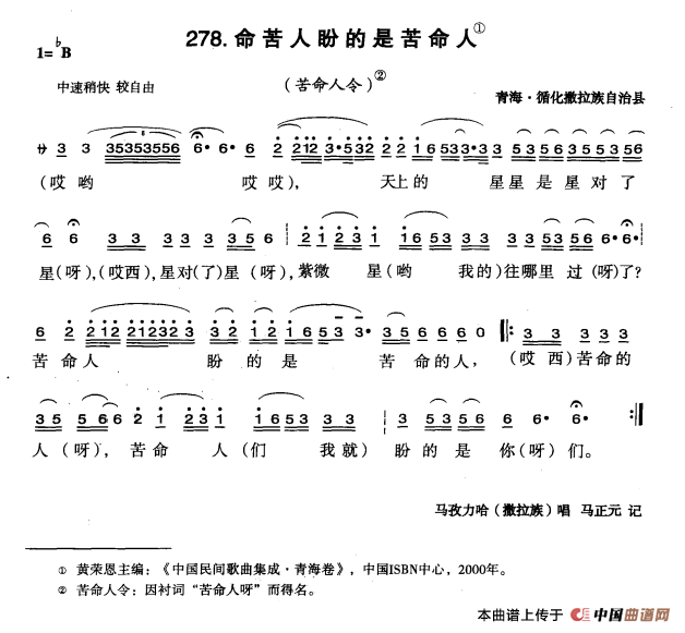 关于《命苦人盼的是苦命人》曲谱的评论